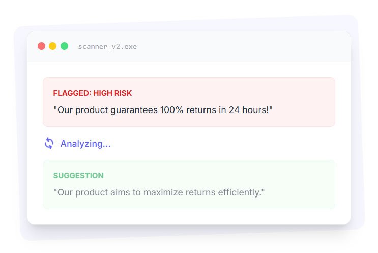 Instant risk detection as you type. Our AI engine scans against thousands of regulatory rules and your custom brand guidelines simultaneously. Catch compliance issues before they ever reach the approval queue.